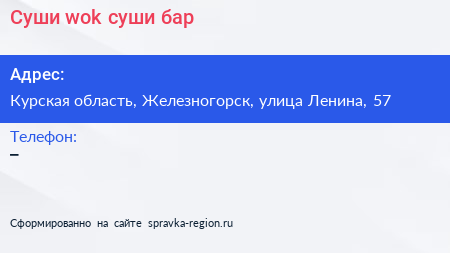 Суши wok, суши-бар по адресу Курская область, Железногорск, улица Ленина, 57 в дальнейшем Организация, размещена в следующих категориях: