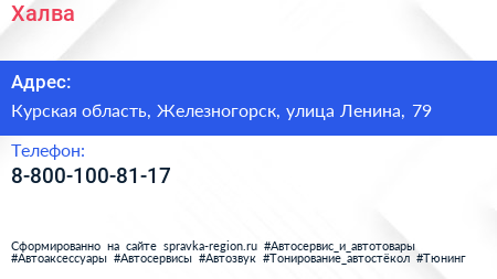Халва по адресу Курская область, Железногорск, улица Ленина, 79 в дальнейшем Организация, размещена в следующих категориях: