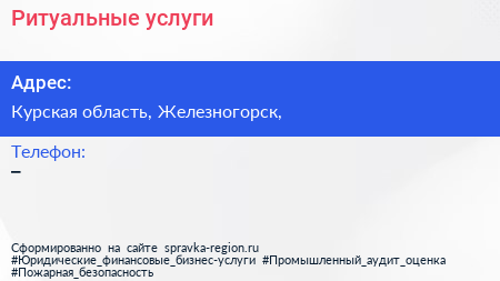 Ритуальные услуги по адресу Курская область, Железногорск, в дальнейшем Организация, размещена в следующих категориях:
