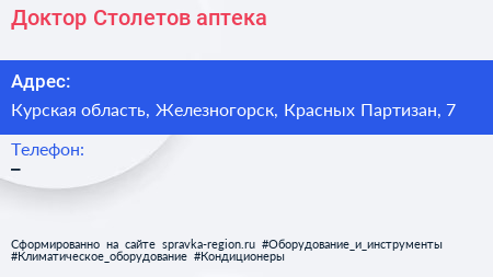 Доктор Столетов, аптека по адресу Курская область, Железногорск, Красных Партизан, 7 в дальнейшем Организация, размещена в следующих категориях: