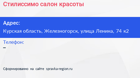 Стилиссимо, салон красоты по адресу Курская область, Железногорск, улица Ленина, 74 к2 в дальнейшем Организация, размещена в следующих категориях: