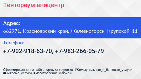 Тенториум, апицентр по адресу 662971, Красноярский край, Железногорск, Крупской, 11 в дальнейшем Организация, размещена в следующих категориях: