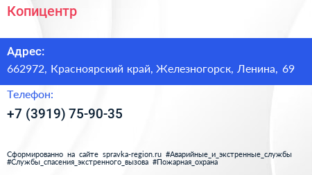 Копицентр по адресу 662972, Красноярский край, Железногорск, Ленина, 69 в дальнейшем Организация, размещена в следующих категориях: