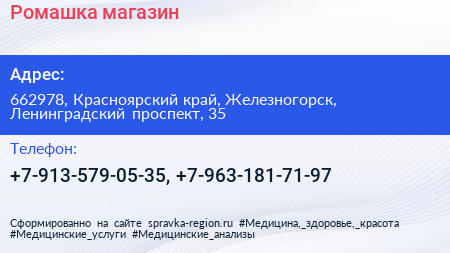 Ромашка, магазин по адресу 662978, Красноярский край, Железногорск, Ленинградский проспект, 35 в дальнейшем Организация, размещена в следующих категориях: