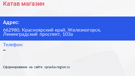 Катав, магазин по адресу 662980, Красноярский край, Железногорск, Ленинградский проспект, 103а в дальнейшем Организация, размещена в следующих категориях: