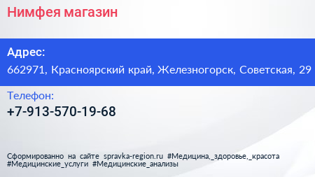 Нимфея, магазин по адресу 662971, Красноярский край, Железногорск, Советская, 29 в дальнейшем Организация, размещена в следующих категориях: