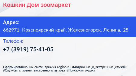 Кошкин Дом, зоомаркет по адресу 662971, Красноярский край, Железногорск, Ленина, 25 в дальнейшем Организация, размещена в следующих категориях: