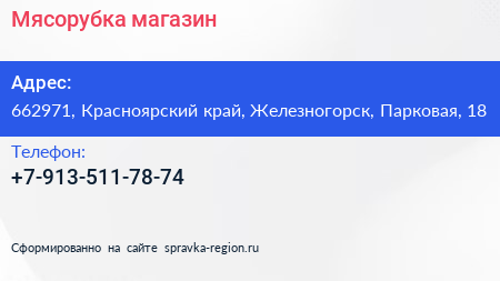 Мясорубка, магазин по адресу 662971, Красноярский край, Железногорск, Парковая, 18 в дальнейшем Организация, размещена в следующих категориях: