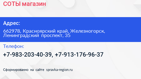 СОТЫ, магазин по адресу 662978, Красноярский край, Железногорск, Ленинградский проспект, 35 в дальнейшем Организация, размещена в следующих категориях:
