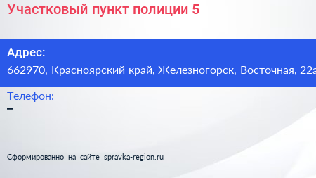 Участковый пункт полиции №5 по адресу 662970, Красноярский край, Железногорск, Восточная, 22а в дальнейшем Организация, размещена в следующих категориях: