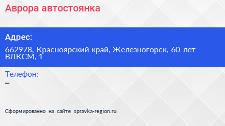 Аврора, автостоянка по адресу 662978, Красноярский край, Железногорск, 60 лет ВЛКСМ, 1 в дальнейшем Организация, размещена в следующих категориях: