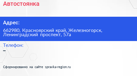 Автостоянка по адресу 662980, Красноярский край, Железногорск, Ленинградский проспект, 57а в дальнейшем Организация, размещена в следующих категориях:
