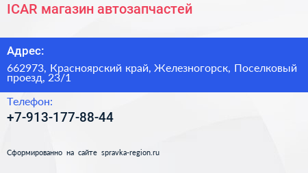 ICAR, магазин автозапчастей по адресу 662973, Красноярский край, Железногорск, Поселковый проезд, 23/1 в дальнейшем Организация, размещена в следующих категориях: