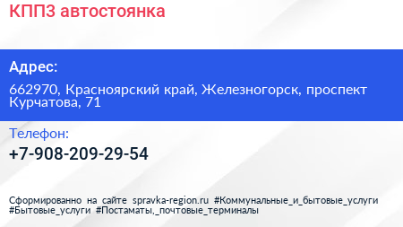 КПП3, автостоянка по адресу 662970, Красноярский край, Железногорск, проспект Курчатова, 71 в дальнейшем Организация, размещена в следующих категориях: