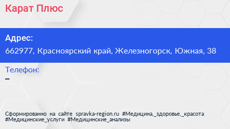 Карат Плюс по адресу 662977, Красноярский край, Железногорск, Южная, 38 в дальнейшем Организация, размещена в следующих категориях: