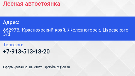 Лесная, автостоянка по адресу 662978, Красноярский край, Железногорск, Царевского, 3/1 в дальнейшем Организация, размещена в следующих категориях: