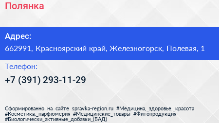 Полянка по адресу 662991, Красноярский край, Железногорск, Полевая, 1 в дальнейшем Организация, размещена в следующих категориях: