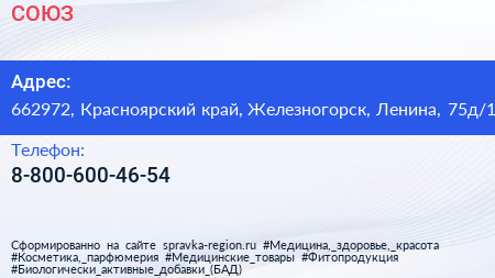 СОЮЗ по адресу 662972, Красноярский край, Железногорск, Ленина, 75д/1 в дальнейшем Организация, размещена в следующих категориях: