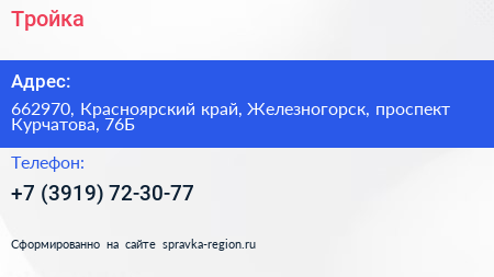 Тройка по адресу 662970, Красноярский край, Железногорск, проспект Курчатова, 76Б в дальнейшем Организация, размещена в следующих категориях: