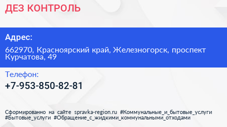 ДЕЗ-КОНТРОЛЬ по адресу 662970, Красноярский край, Железногорск, проспект Курчатова, 49 в дальнейшем Организация, размещена в следующих категориях: