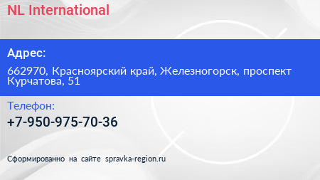 NL International по адресу 662970, Красноярский край, Железногорск, проспект Курчатова, 51 в дальнейшем Организация, размещена в следующих категориях: