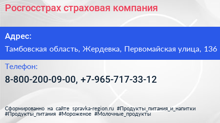 Росгосстрах, страховая компания по адресу Тамбовская область, Жердевка, Первомайская улица, 136 в дальнейшем Организация, размещена в следующих категориях: