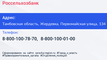 Россельхозбанк по адресу Тамбовская область, Жердевка, Первомайская улица, 134 в дальнейшем Организация, размещена в следующих категориях: