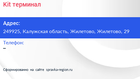 Kit, терминал по адресу 249925, Калужская область, Жилетово, Жилетово, 29 в дальнейшем Организация, размещена в следующих категориях: