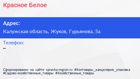 Красное & Белое по адресу Калужская область, Жуков, Гурьянова, 5а в дальнейшем Организация, размещена в следующих категориях: