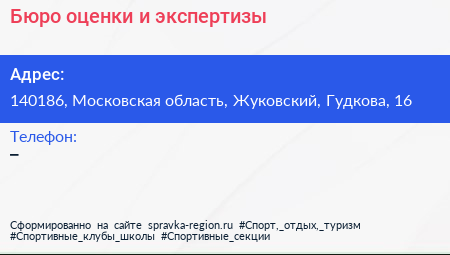 Бюро оценки и экспертизы по адресу 140186, Московская область, Жуковский, Гудкова, 16 в дальнейшем Организация, размещена в следующих категориях: