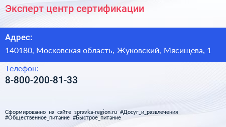 Эксперт, центр сертификации по адресу 140180, Московская область, Жуковский, Мясищева, 1 в дальнейшем Организация, размещена в следующих категориях: