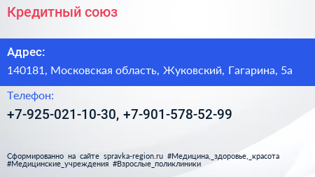 Кредитный союз по адресу 140181, Московская область, Жуковский, Гагарина, 5а в дальнейшем Организация, размещена в следующих категориях: