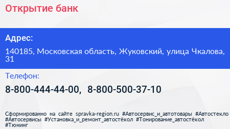 Открытие, банк по адресу 140185, Московская область, Жуковский, улица Чкалова, 31 в дальнейшем Организация, размещена в следующих категориях: