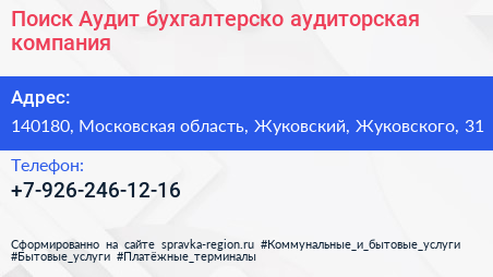 Поиск-Аудит, бухгалтерско-аудиторская компания по адресу 140180, Московская область, Жуковский, Жуковского, 31 в дальнейшем Организация, размещена в следующих категориях: