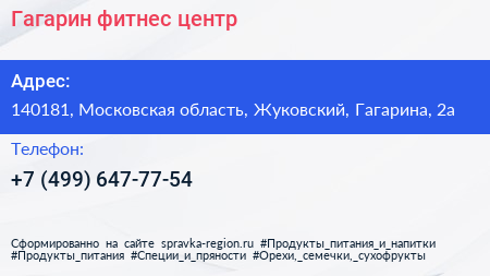 Гагарин, фитнес-центр по адресу 140181, Московская область, Жуковский, Гагарина, 2а в дальнейшем Организация, размещена в следующих категориях: