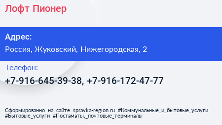 Лофт Пионер по адресу Санаторий-Профилакторий ОАО "ЖМЗ", 4А, Нижегородская улица, ДСК Красный Бор, Кратово, Раменский городской округ, Московская область, Центральный федеральный округ, 140180, Россия в дальнейшем Организация, размещена в следующих категориях: