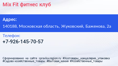 Mix-Fit, фитнес-клуб по адресу 140188, Московская область, Жуковский, Баженова, 2а в дальнейшем Организация, размещена в следующих категориях: