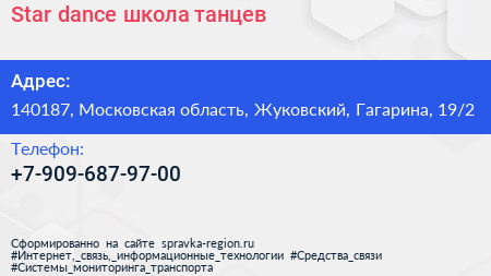 Star dance, школа танцев по адресу 140187, Московская область, Жуковский, Гагарина, 19/2 в дальнейшем Организация, размещена в следующих категориях: