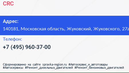 CRC по адресу 140181, Московская область, Жуковский, Жуковского, 27а в дальнейшем Организация, размещена в следующих категориях: