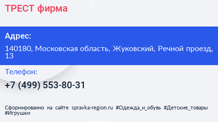 ТРЕСТ, фирма по адресу 140180, Московская область, Жуковский, Речной проезд, 13 в дальнейшем Организация, размещена в следующих категориях: