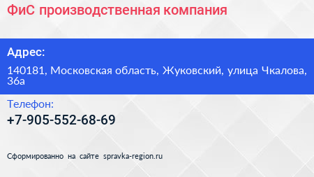 ФиС, производственная компания по адресу 140181, Московская область, Жуковский, улица Чкалова, 36а в дальнейшем Организация, размещена в следующих категориях: