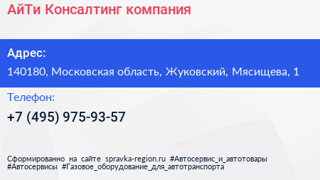 АйТи Консалтинг, компания по адресу 140180, Московская область, Жуковский, Мясищева, 1 в дальнейшем Организация, размещена в следующих категориях: