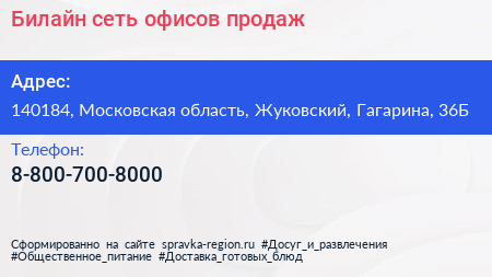 Билайн, сеть офисов продаж по адресу 140184, Московская область, Жуковский, Гагарина, 36Б в дальнейшем Организация, размещена в следующих категориях: