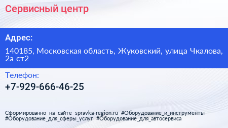Сервисный центр по адресу 140185, Московская область, Жуковский, улица Чкалова, 2а ст2 в дальнейшем Организация, размещена в следующих категориях: