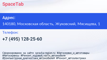 SpaceTab по адресу 140180, Московская область, Жуковский, Мясищева, 1 в дальнейшем Организация, размещена в следующих категориях: