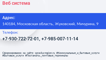 Веб-система по адресу 140184, Московская область, Жуковский, Мичурина, 9 в дальнейшем Организация, размещена в следующих категориях: