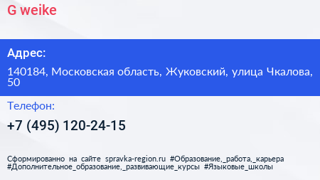 G-weike по адресу 140184, Московская область, Жуковский, улица Чкалова, 50 в дальнейшем Организация, размещена в следующих категориях: