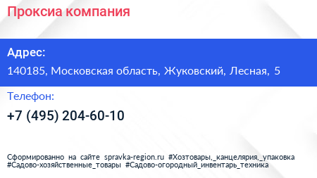 Проксиа, компания по адресу 140185, Московская область, Жуковский, Лесная, 5 в дальнейшем Организация, размещена в следующих категориях: