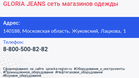 GLORIA JEANS, сеть магазинов одежды по адресу 140188, Московская область, Жуковский, Лацкова, 1 в дальнейшем Организация, размещена в следующих категориях: