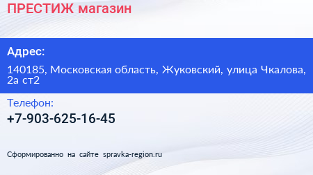 ПРЕСТИЖ, магазин по адресу 140185, Московская область, Жуковский, улица Чкалова, 2а ст2 в дальнейшем Организация, размещена в следующих категориях: